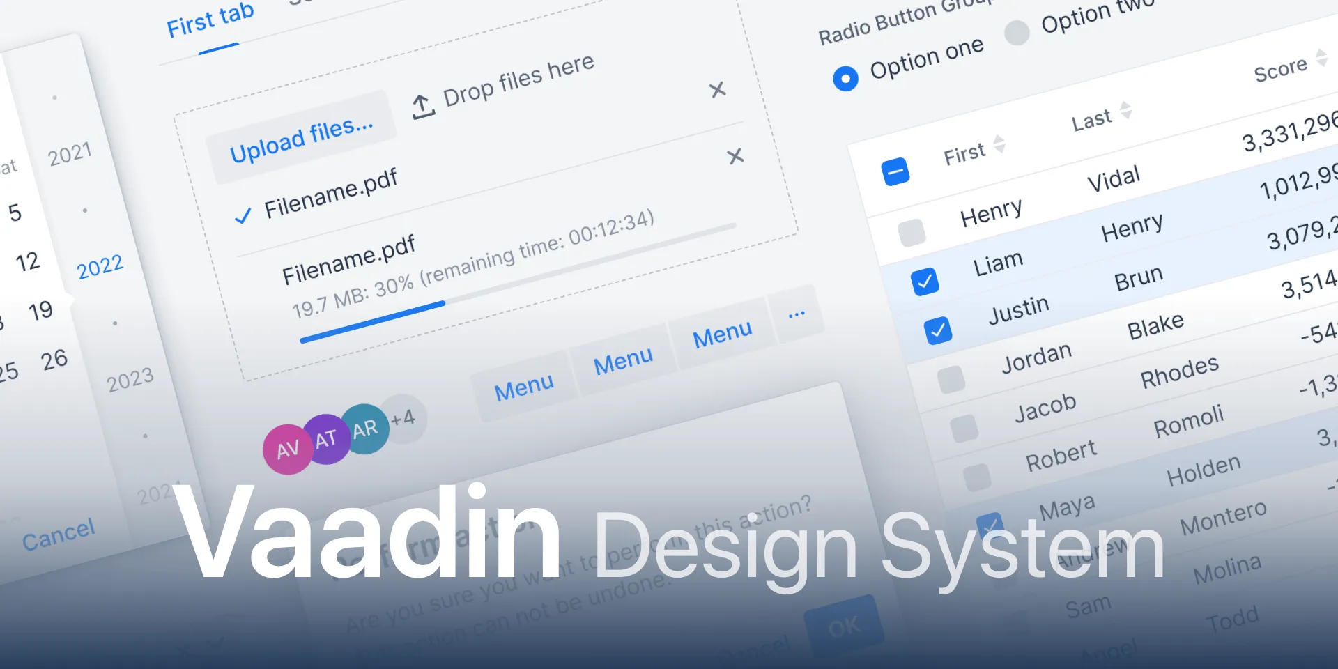 Designers can create pixel-perfect UI designs and prototypes, that are easy for developers to implement, using the popular design tool Figma and the official Vaadin Figma libraries. The components in the libraries use the default Lumo styling, and you can adapt them to suit your branding and vision.